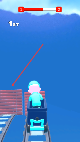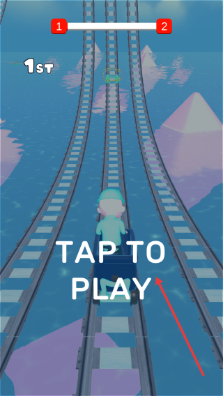 1、点“TAP TO PLAY”,操控蓝色车厢,沿双轨道行驶,避障碍(砖块)。
