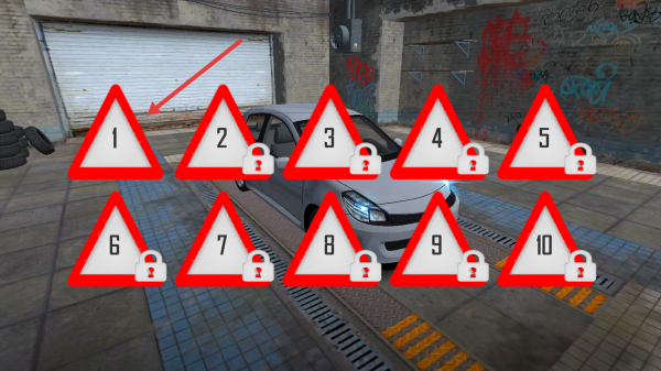 2、选择解锁的【1】号关卡,驾驶车辆开启城市道路挑战。