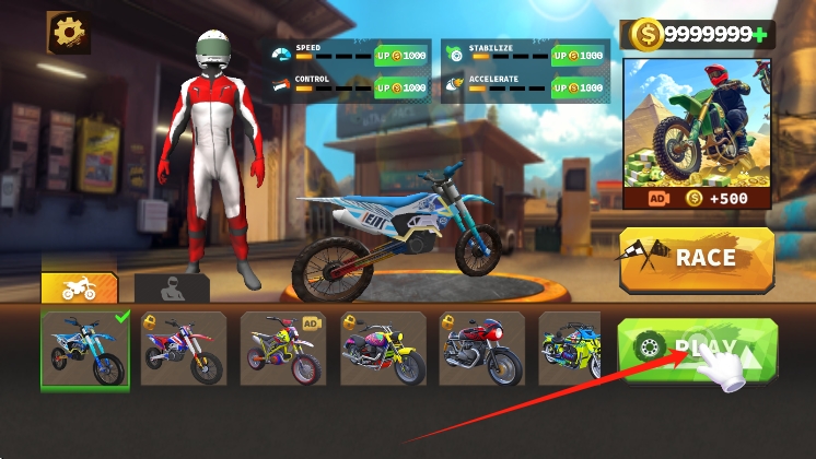 3、摩托养成系统:提供丰富车型选择,支持引擎动力、轮胎抓地力等部件升级,让玩家打造专属高性能特技摩托。