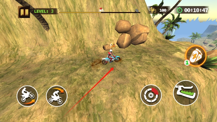 2、特技时机把握:驶上坡道前预判腾空高度,在空中滑动屏幕触发特技动作,落地瞬间需迅速调整重心避免翻车。