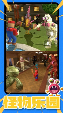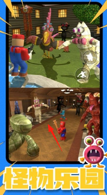 3、挑战“怪物乐园”,选马里奥蜘蛛侠,近战远程配合,集火大型怪物(火鸡),解锁新角色,推进关卡。