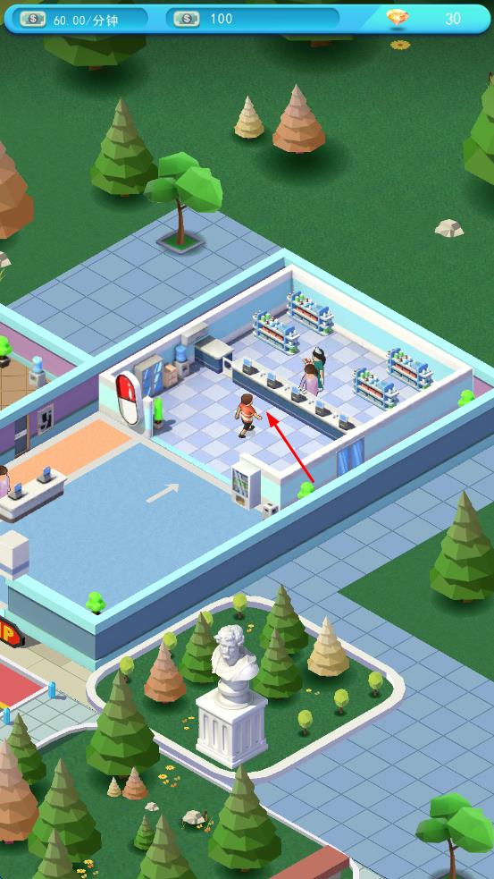 1、进入游戏后规划医院布局,划分门诊区、住院部、检查科室等功能区域,放置基础医疗设施搭建初始医院。