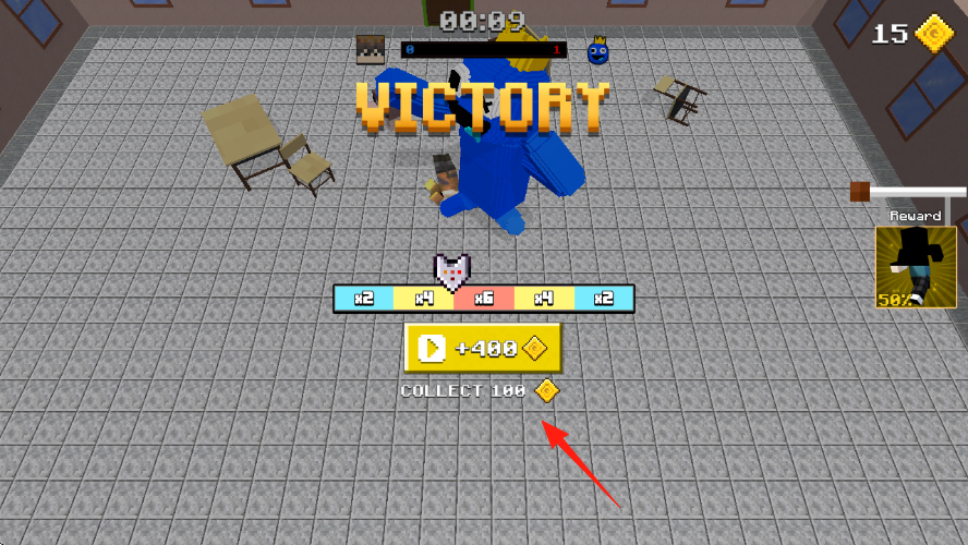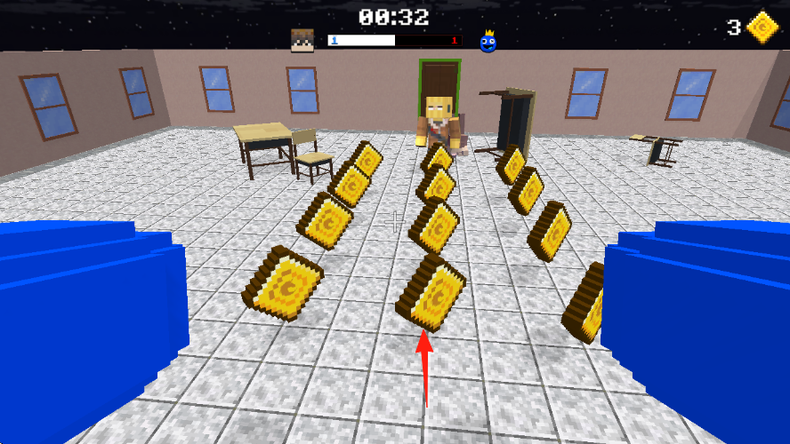 2、遇到敌人,靠近金币堆,吸引敌人,利用场景(课桌),躲避攻击,近战远程反击。