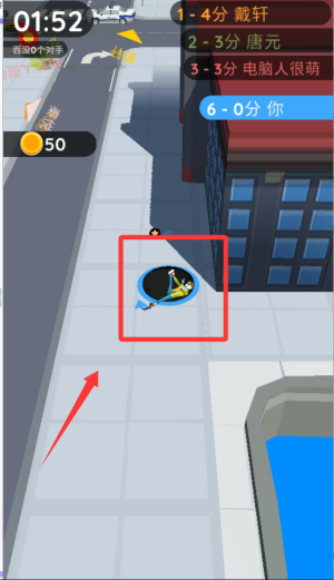 1、开局先控制黑洞吞噬周围的小型物体,比如行人和车辆,快速扩大体积,为后续挑战更强大的对手打下基础。