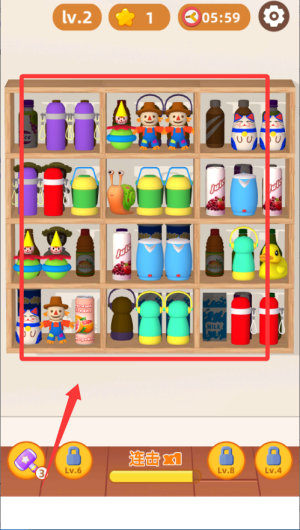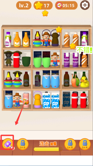 1、渐进式难度设计,前期引导基础技巧,后期挑战复杂组合。特殊关卡引入传送带等动态元素,考验即时判断与应变能力。