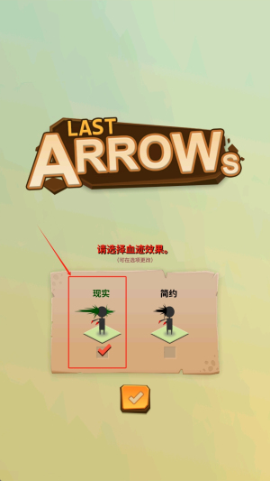 1、在游戏初始界面选择血迹效果,红色框标记的"现实"选项提供更逼真的战斗反馈,背景采用黄绿渐变设计。