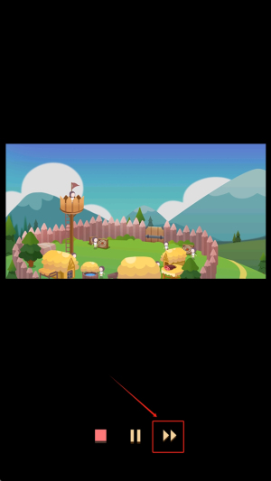 2、进入村落场景后点击红框标记的">"按钮开始关卡,若未响应可先暂停检查操作指引,确认后继续推进游戏进程。