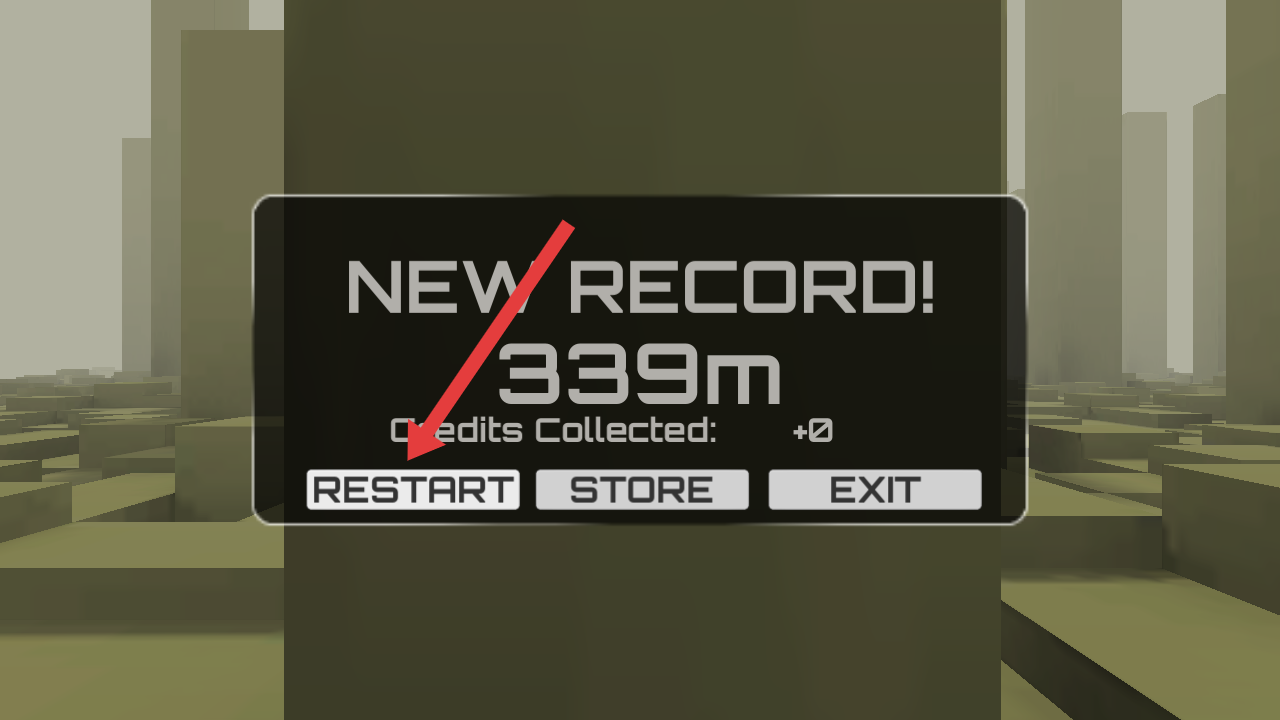 1、在航天赛车的结算界面,需要点击【RESTART】按钮,重新开启飞行挑战,冲击更远记录。