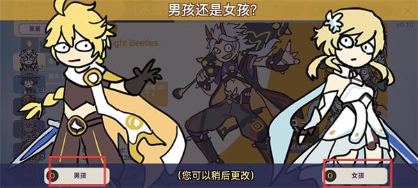 1、下载安装完成之后进入游戏,这里我们点击屏幕下方的按钮,再选择完性别,即可开启恶搞抽卡的趣味体验之旅。