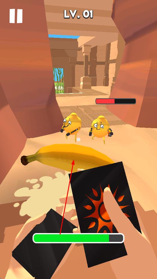 1、手持卡牌,点击滑动释放技能,利用卡牌效果,对抗前方怪物,把控战斗节奏。