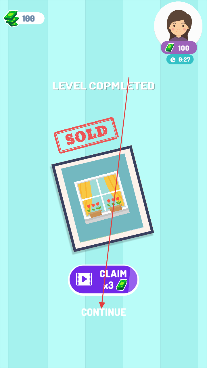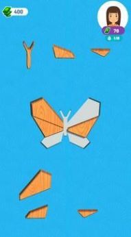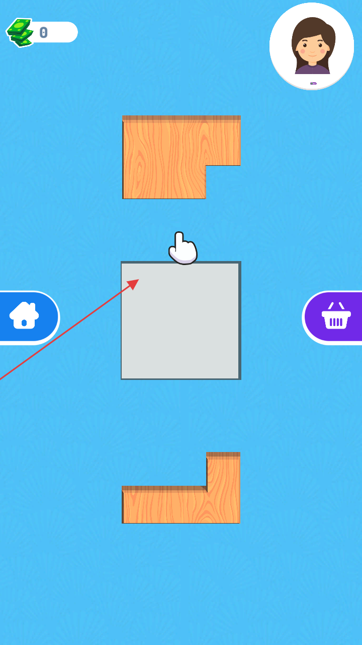2、拖动木块,拼装成完整形状,完成关卡获金币奖励,可看广告“CLAIM”翻倍。