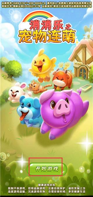 1、下载安装完成后进入游戏,点击屏幕下方的开始游戏按钮,选择关卡开启宠物消除挑战,首关会引导玩家熟悉三消基本操作。