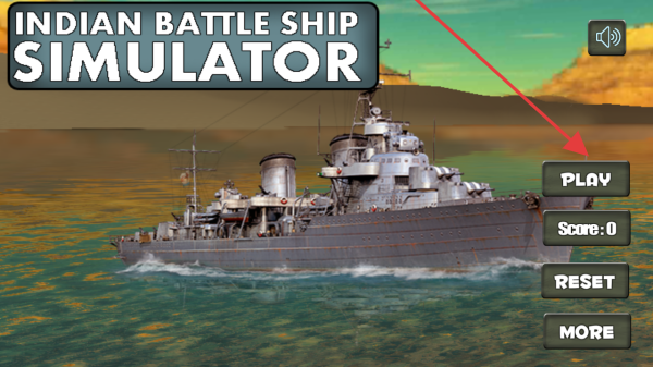1、在游戏主界面,点击右侧【PLAY】按钮,进入【INDIAN BATTLE SHIP SIMULATOR】,开启战舰模拟战斗。