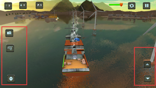 3、战斗中,熟悉左侧【相机、地图、方向】与右侧【上下箭头】控制按钮,操控战舰航行,应对战场变化。