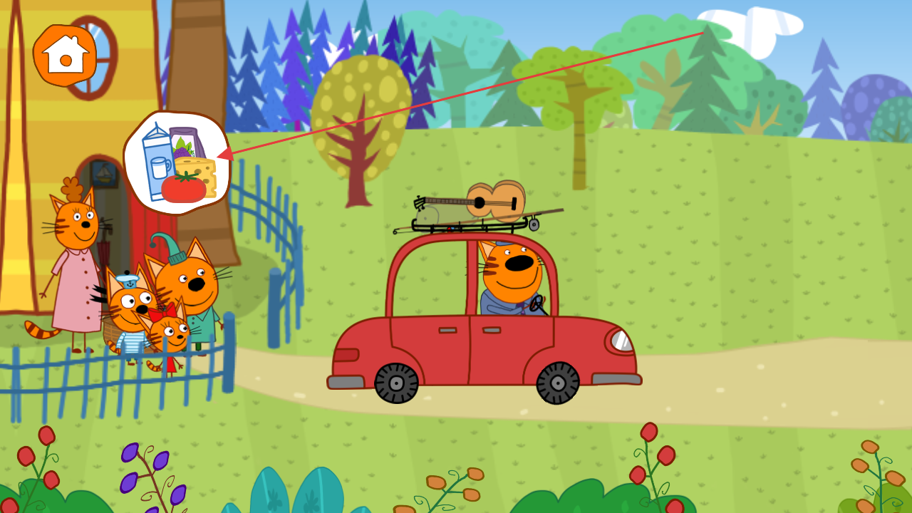 2、操作猫咪驾驶车辆,前往野餐地点,布置野餐场景,与其他角色互动。