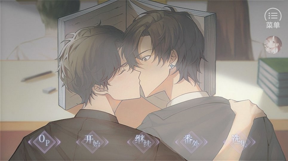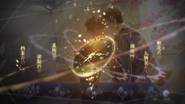 1、进入游戏首屏,点击画面任意区域,解锁【OP】【开始】【继续】【番外】【选集】功能入口,开启游戏流程。