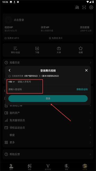 4、在登录页面,输入手机号、获取并填写验证码,点击登录即可。