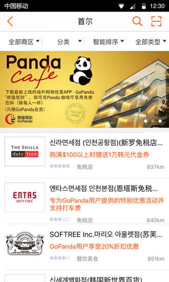 GoPanda“熊猫驾到”——针对中国游客出境购物的手机应用。全球购物,随时随地“拿优惠、享特权”。基于“位置定位”,实时为您精选附近的餐饮美食、购物、休闲娱乐等特色商家等优惠及特权信息。
