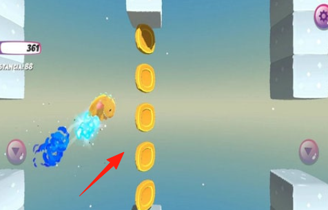 3、挑战冰雪关卡,触发冲刺技能(蓝色特效),连续收集金币,避开障碍,解锁高阶角色,推进养成。
