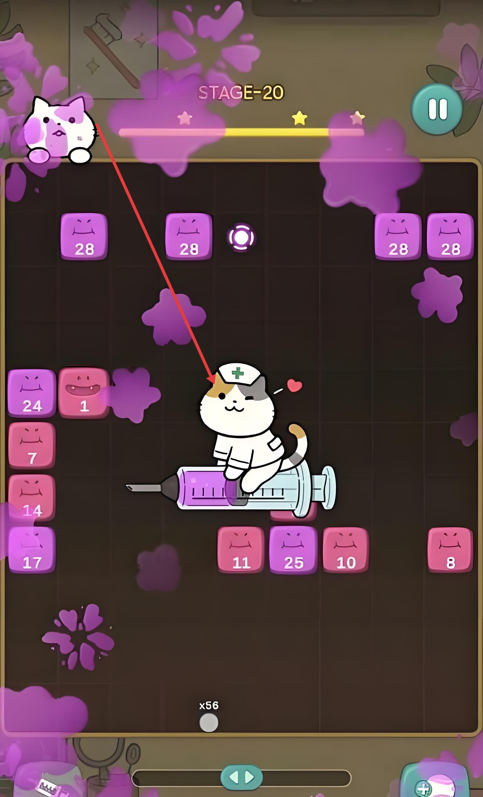 1、动态互动场景:猫咪患者会根据治疗进度做出眨眼、摇尾巴等实时反应,治疗成功时会露出开心表情,增强游戏代入感。