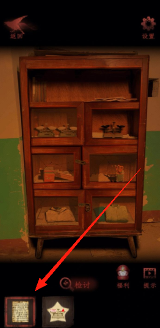 3、密码解锁:根据神兽眼睛亮灭调整柜子眼睛装置,拾取手帕离开灵堂,擦拭墙面获得暗门信息,输入密码进入密道。