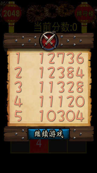 2、游戏中断后,在分数榜点击【继续游戏】,恢复进度,继续合成数字,冲击更高分数。