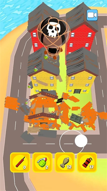 2、资源管理网络:关卡中分布多种功能道具,合理规划使用顺序提升拆除效率,及时观察建筑状态调整策略,巧妙利用地形优势完成高难度破坏,注意黑洞能量消耗,避免提前失效。