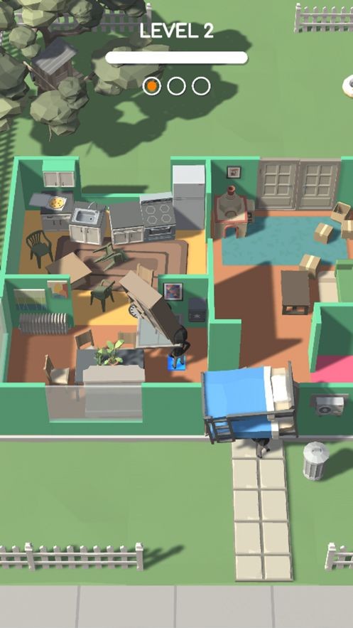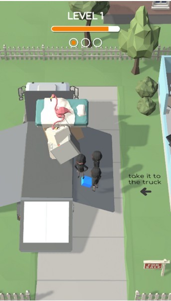 3、在LEVEL1等关卡,清理房屋内物品,按指示搬运到卡车,逐步完成搬家整理任务。