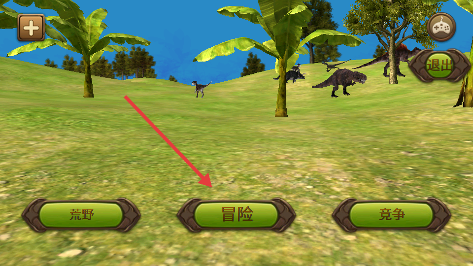 1、安装完成后点击冒险进入,抄起生锈砍刀割藤蔓造陷阱,用恐龙粪便当驱虫剂。