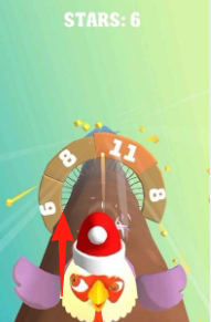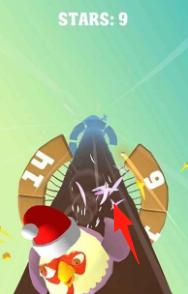 1、操控戴圣诞帽小鸡(图1),沿螺旋轨道,点击调整方向(避开数字障碍),收集星星(STARS:6)。