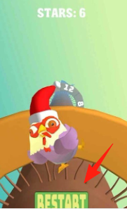3、若失误(掉落轨道),点击“RESTART”(图3),重新挑战,优化路径,突破高分,解锁新小鸡皮肤。