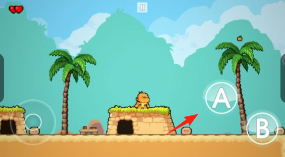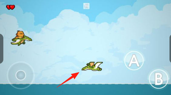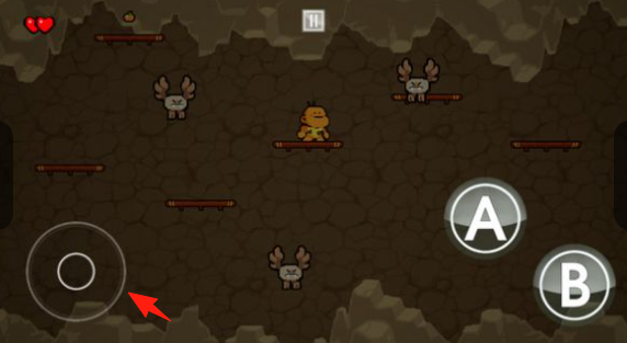 1、在洞穴场景,用左侧摇杆操控小恐龙,移动躲避怪物(蝙蝠),按A/B键互动(攻击跳跃)。