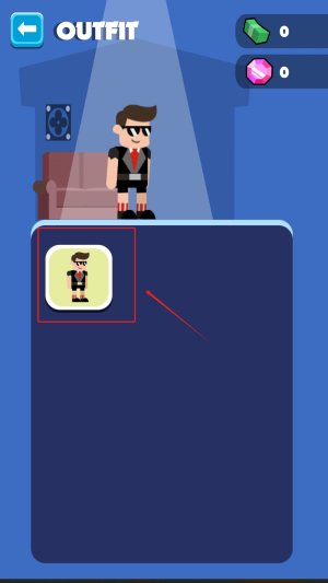 3、在角色装扮界面选择红框标记的黑色特工套装,搭配墨镜和红色领带造型,打造个性化特工形象参与任务。