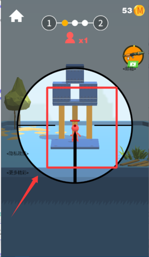 1、操控火柴人先熟悉操作,点击打开瞄准镜,松开后射击,注意目标运行轨迹。