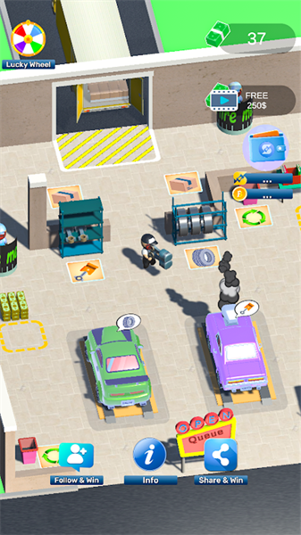 3、自由经营模式没有任何限制,玩家可以打造梦想中的汽修帝国,参与全球玩家竞争,争夺最佳汽修大亨称号。