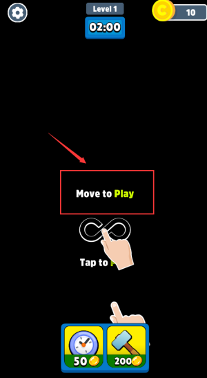 1、点击Tapto开始第一关,2分钟内完成移动任务获取金币。