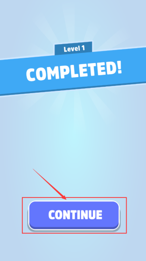 3、通关后点击CONTINUE继续,完成Level,1,进入下一关卡。