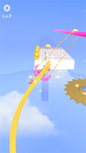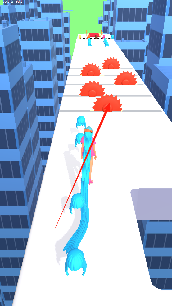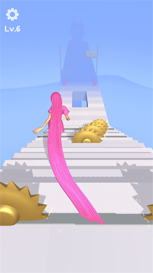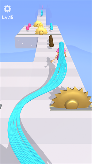 2、道具收集网络:赛道中分布多种功能道具,增发道具提升发量长度,护盾道具抵挡一次切割,染色道具改变发丝颜色,合理规划道具使用顺序提升闯关效率。