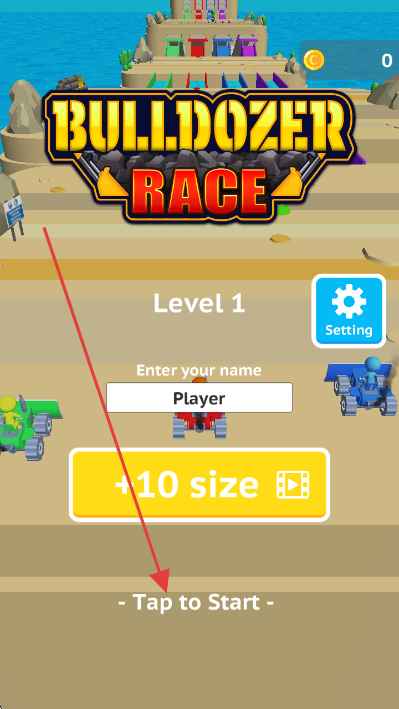 1、点击界面底部【Tap to Start】文字区域,启动《Bulldozer Race》游戏。