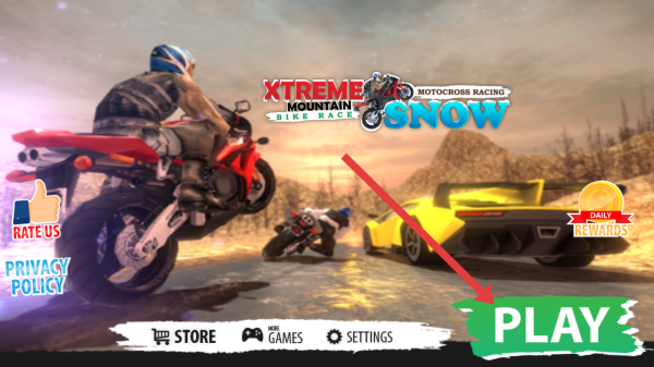 2、进入极限摩托车冬季赛的游戏主界面,点击右下角【PLAY】按钮,开启摩托越野竞速的关卡挑战。