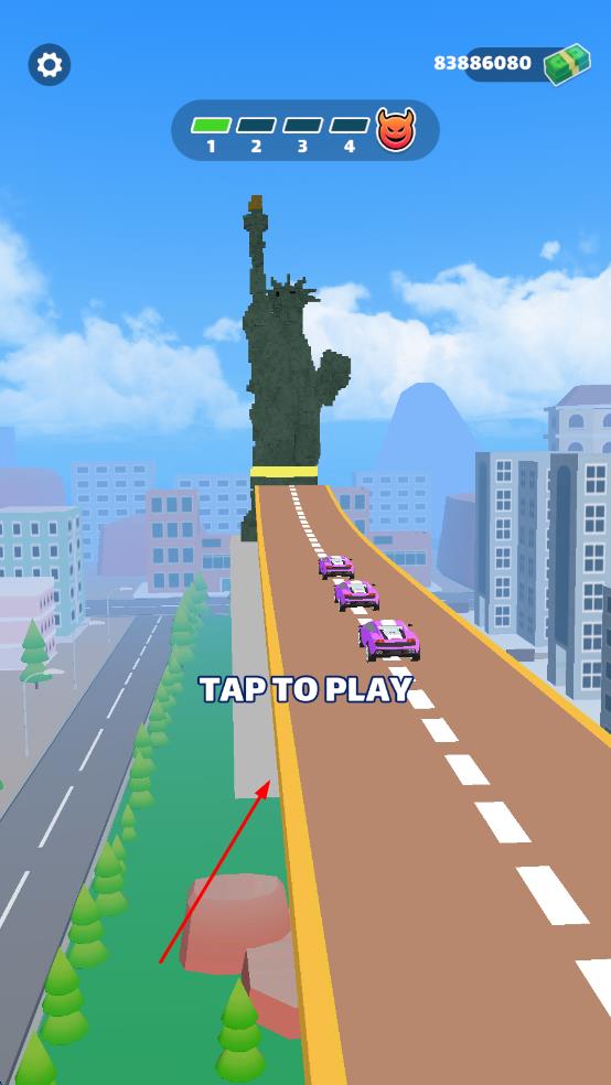 3、每关设置星级评分标准,完成极限特技连击与无碰撞通关可解锁稀有赛车部件,挑战全球玩家的赛道用时纪录。