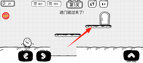 2、基础解谜第1关“进门就过关”,操控茶叶蛋跳跃,通过悬浮板,抵达门,完成通关。