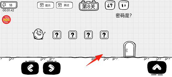 3、进阶挑战第8关“密码是?”,互动问号方块,找数字线索,输入密码开门,推进冒险。