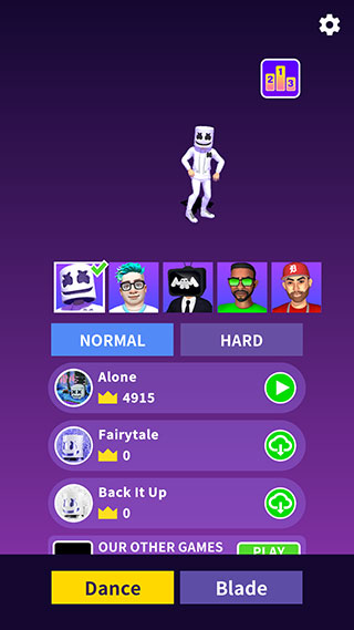 3、完成一曲跑酷挑战获取评分奖励,可解锁Marshmello新曲包或兑换角色外观装饰道具。