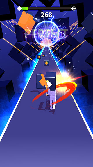 3、动态路径设计:方块路径包含旋转、折叠、变色等机关,需根据音符提示提前预判跳跃时机,考验反应与节奏感。
