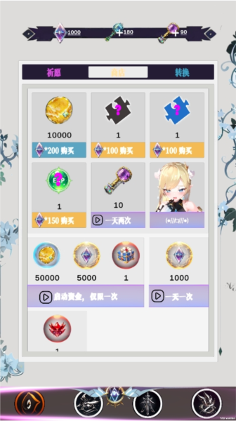 2、在【祈愿】界面,依据资源选道具购买(如金币、碎片),想获取角色“(Al)zeh”可尝试对应祈愿,积累养成材料。
