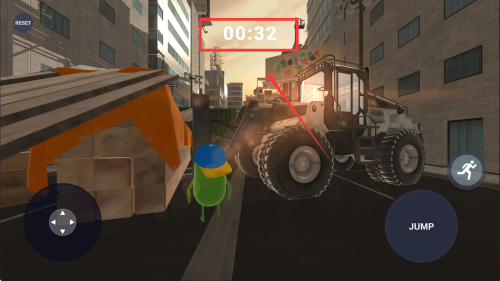 1、基础机制,通过虚拟摇杆控制豆子人移动,结合跳跃、滑行和吸附技能攀爬高塔,需在限定时间内登顶通关。