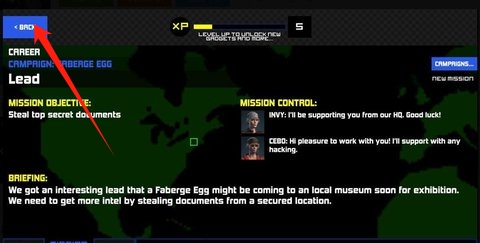 1、点击返回,通过预判守卫行动节奏实施突袭,利用连续完成高难度任务触发"暗影大师"状态,通过暂停功能调整策略与查看提示。