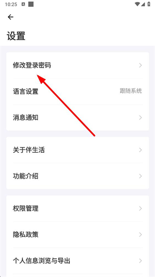 3、在设置界面点击修改登录密码选项,进入密码修改页面。