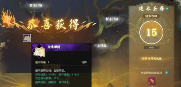 3、收集满51片后解锁建木恩赐界面,通过祈愿系统消耗赤金之羽兑换金缕翠团坐骑,骏马积分为1000分。